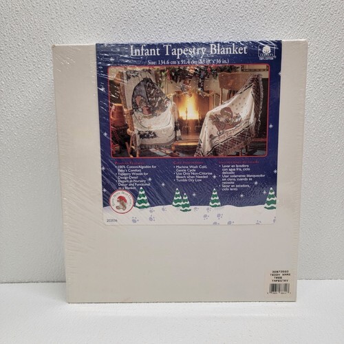 Teddy Beddy Bear Tapestry Baby Christmas Blanket Fringe Riegel 53" x 36" New Sealed. Says "My First Christmas" on the blanket as well. Images show actual blanket that will ship.