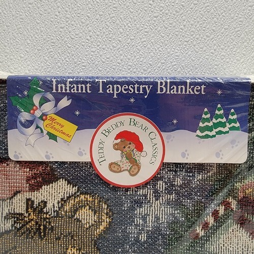- Teddy Beddy Bear Tapestry Baby Christmas Blanket Fringe Riegel 53" x 36" New