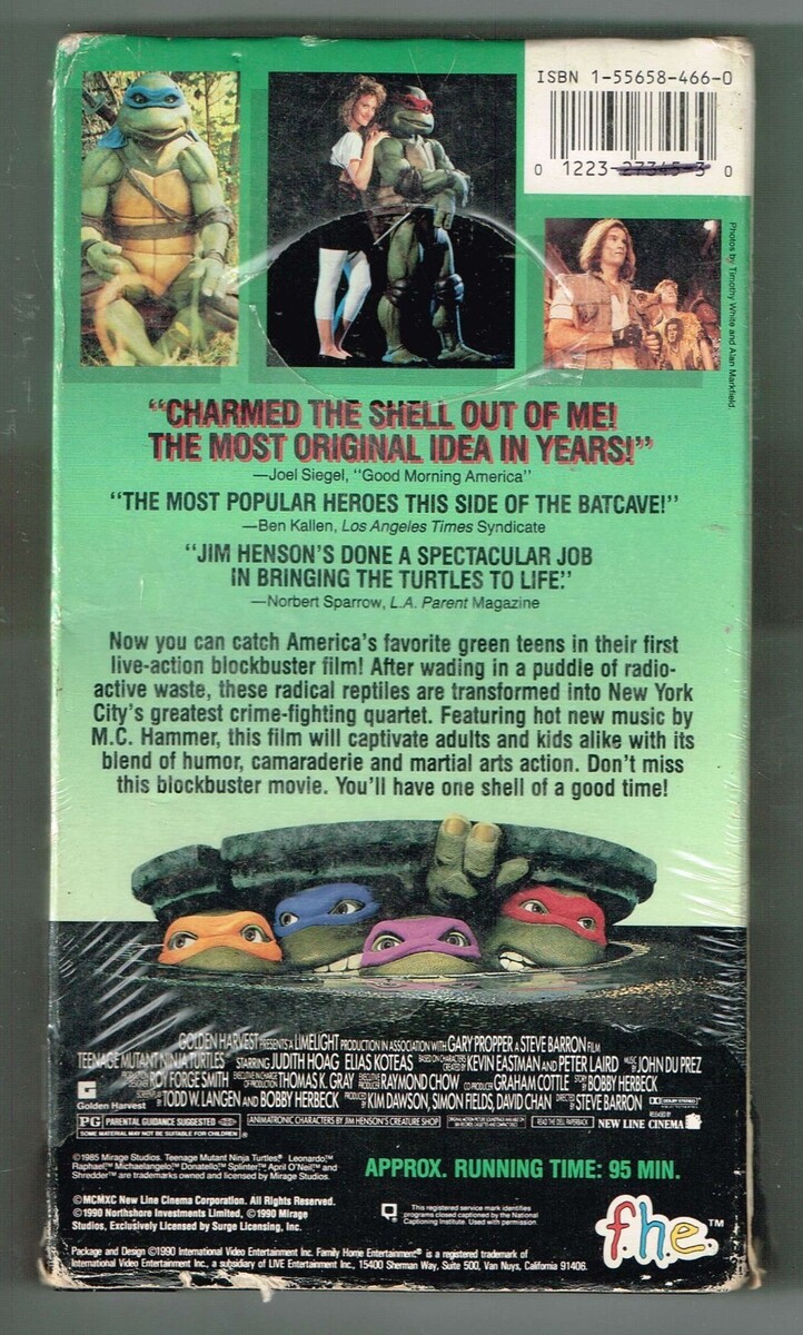 "Cowabunga!" This is the original, fan-favorite1990 live-action movie that launched the Turtles onto the big screen! Now you can catch America's favorite green teens in their first live-action blockbuster. This is the nostalgic VHS release distributed by Family Home Entertainment (FHE).