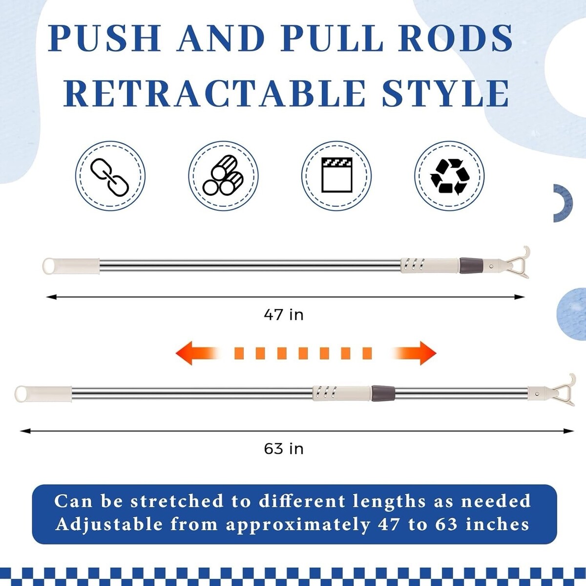 telescoping skylight pole hook 47-63 inch stainless blinds shades window wand adjustable rod skylight pull cord cordless