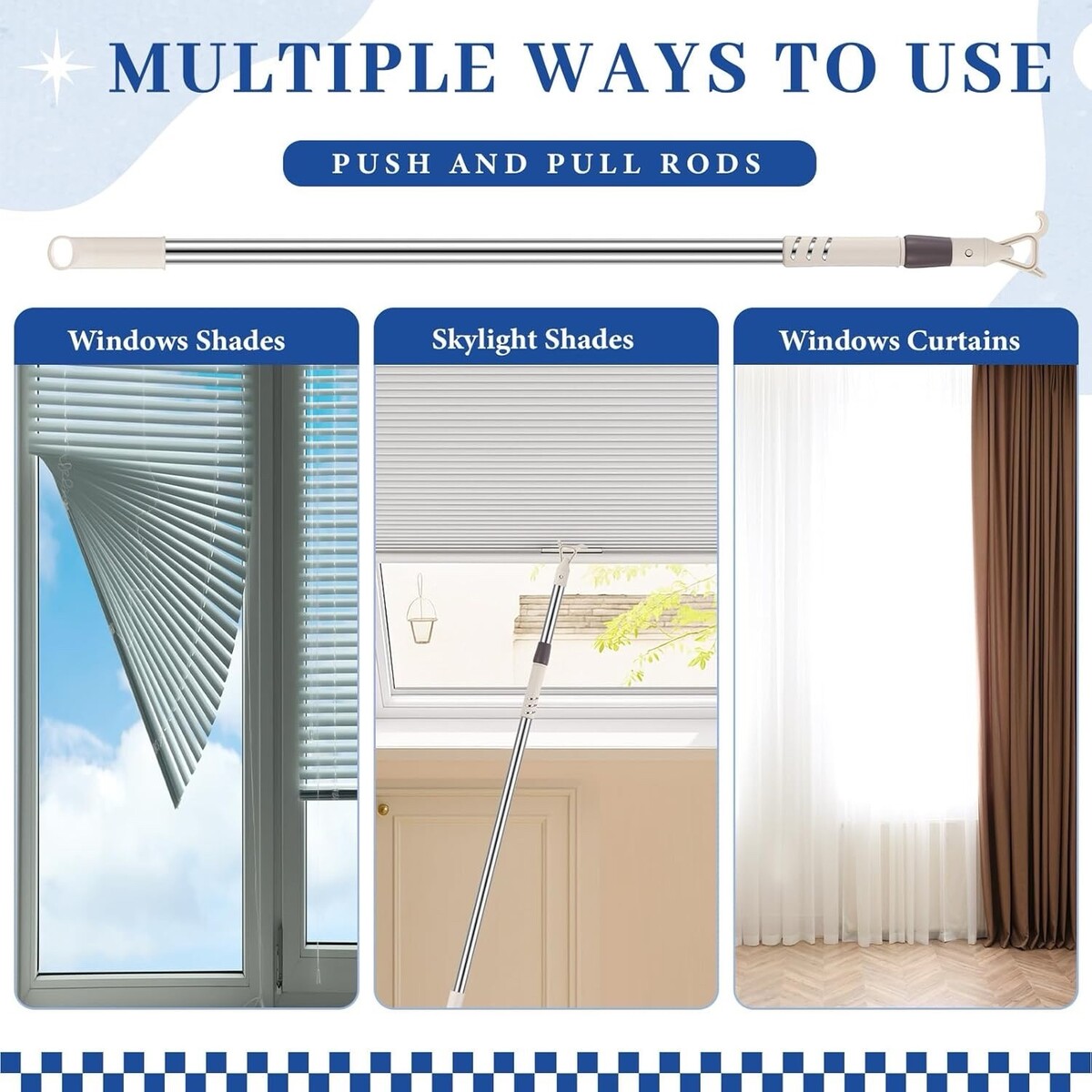 - Telescoping Skylight Pole Hook 47-63” Stainless Steel Wand Blinds Shades Velux