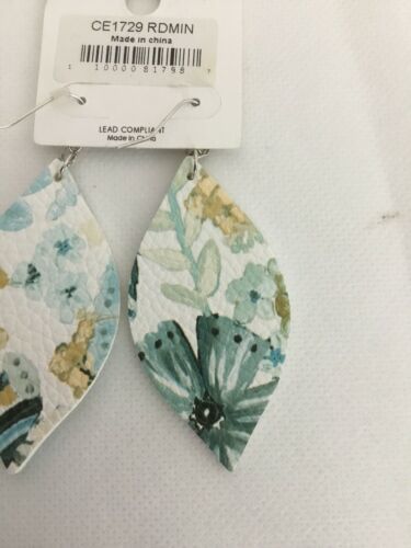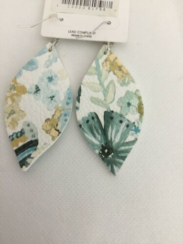 Tell Your Tale Soft Lightweight Foam Floral Blue Green 2” Long Earrings NWT