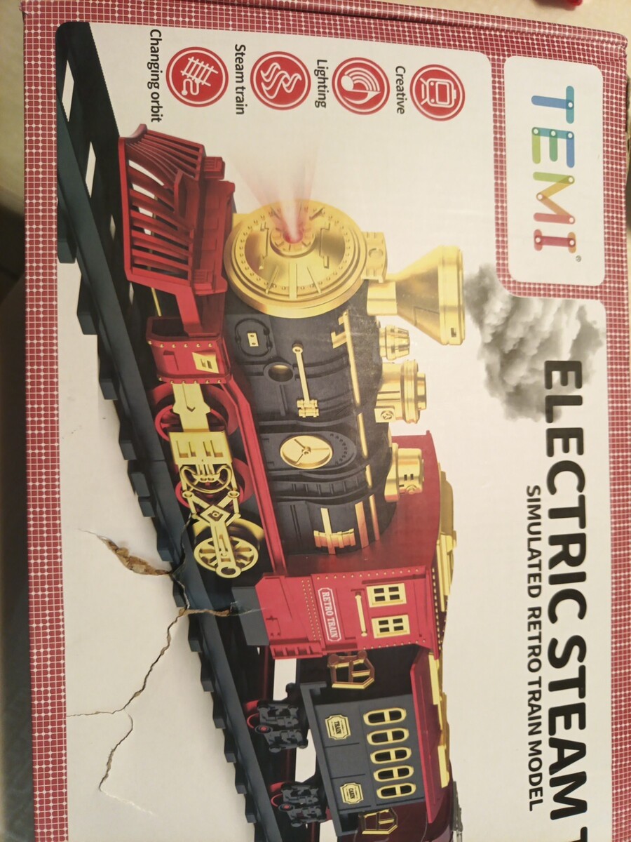- Temi Train Set Electric Steam Locomotive Engine Cargo Car Track Battery Operated