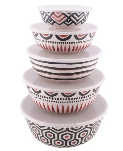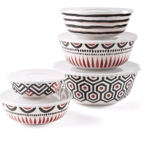 - Ten (10) Piece Mixing Bowl Set ~ Melamine ~ BLACK ~ Multi-Colored ~ HV0215-510BL
