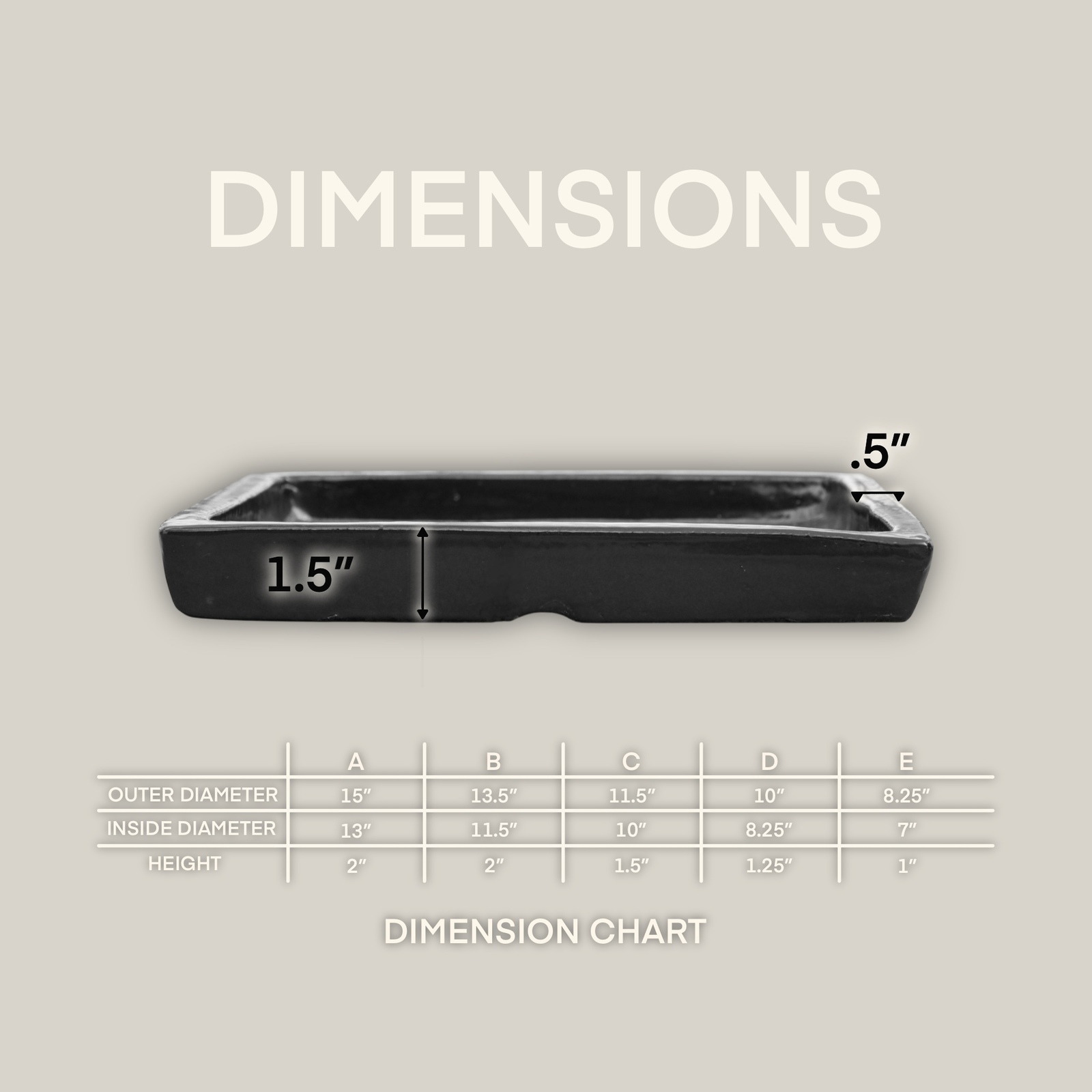 Ten Thousand Pots- Square Premium Shiny Black Ceramic Plant Saucer-Sizes 10"-15"