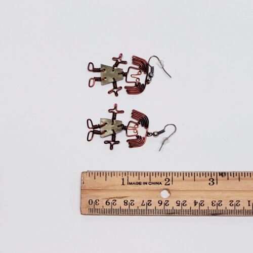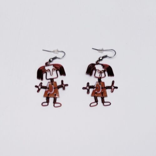 The "Ten Thousand Villages Dancing Girl" earrings are artisan-crafted dangle earrings from Kenya and are in excellent condition. Made with copper and red wire, these handcrafted earrings feature a unique design of a dancing girl. With a length of 2 inches, these earrings showcase Kenyan craftsmanship and artistry. Perfect for adding a touch of cultural flair and individuality to any outfit, these earrings are a beautiful statement piece that celebrates the traditional art of jewelry-making in Kenya.