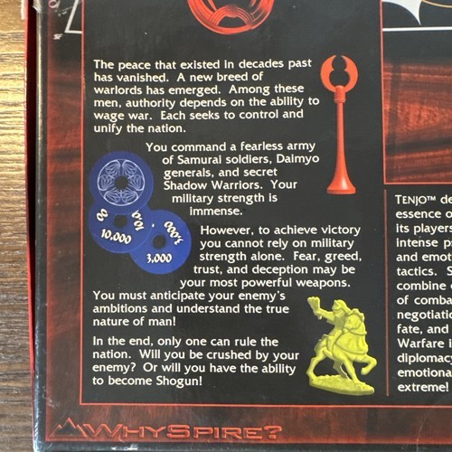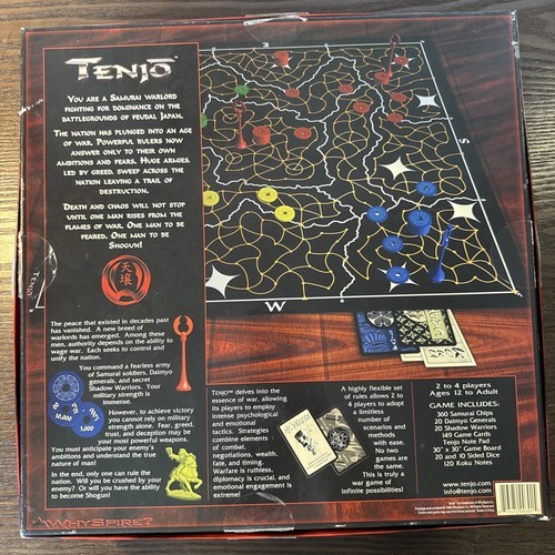 - Tenjo (Samurai Warlord) Board Game Whyspire 1999 Large Box Japanese Theme Red