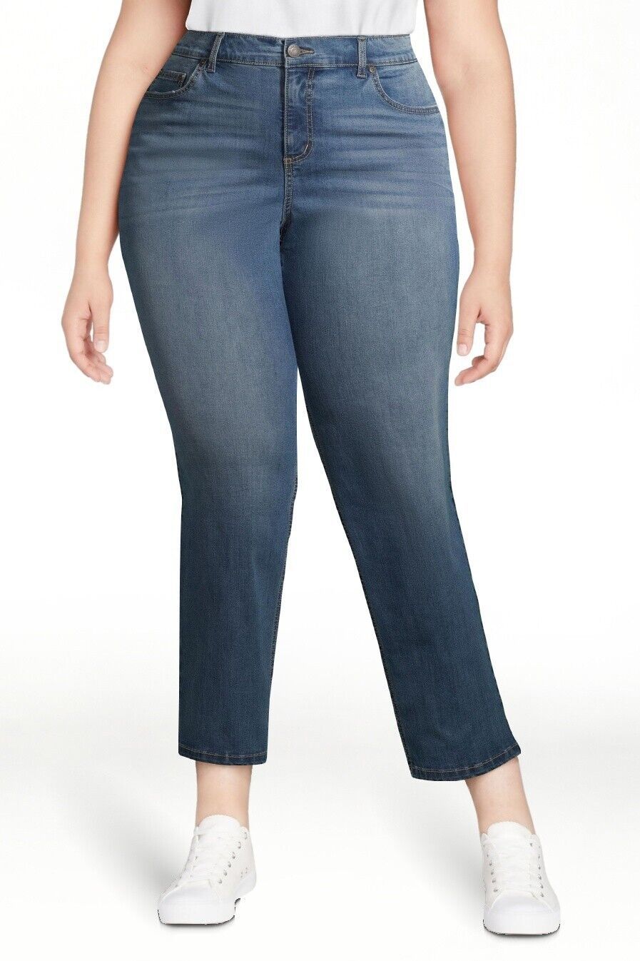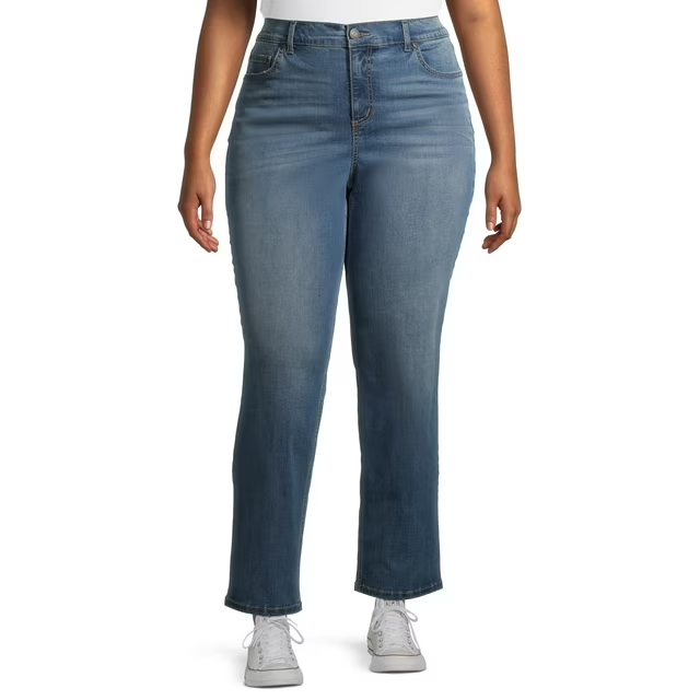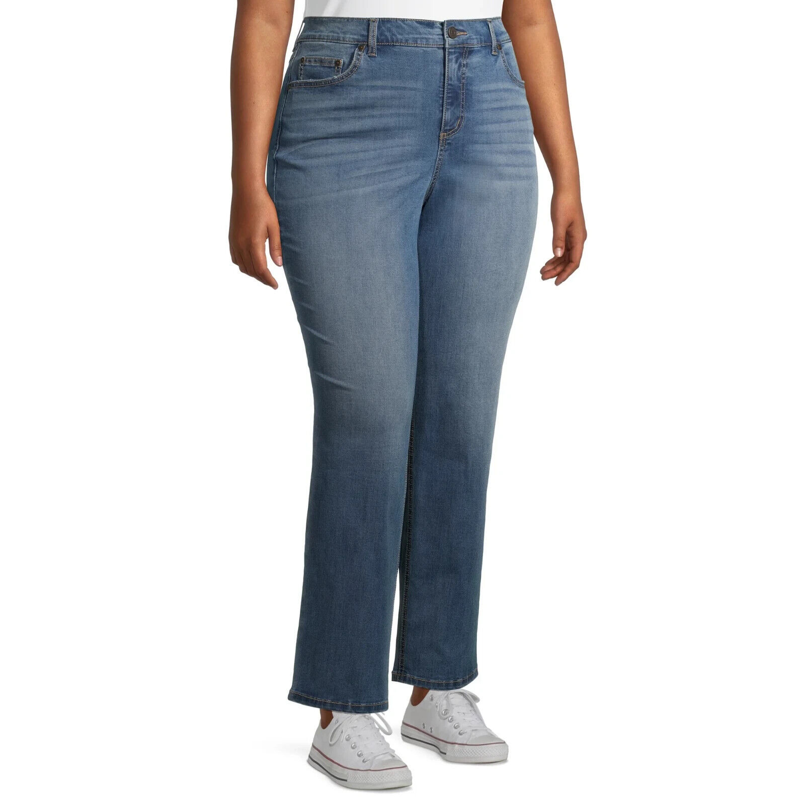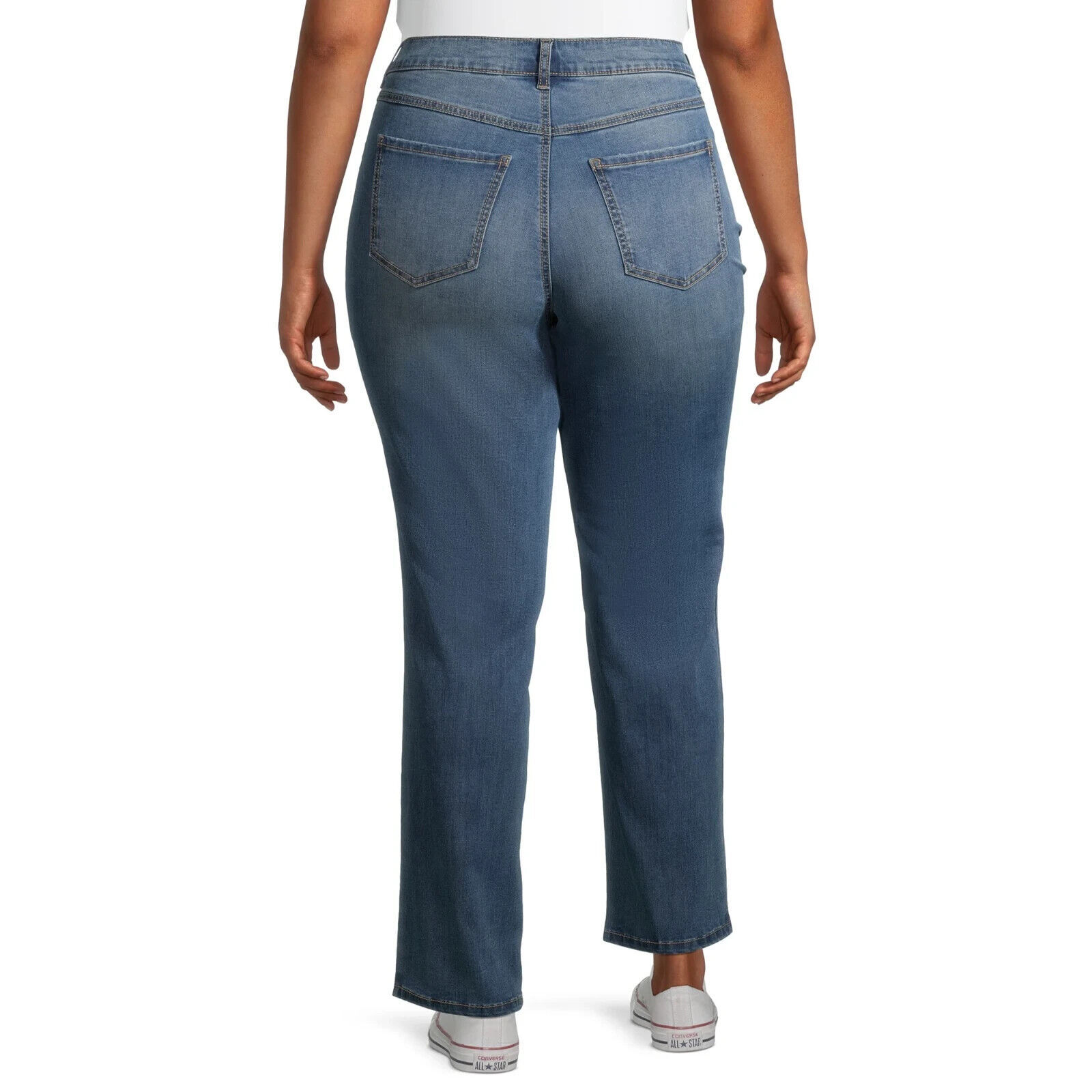 - Terra & Sky Women's Plus Size Core Denim Straight Jean, LTWASH Size 26W(Petite)
