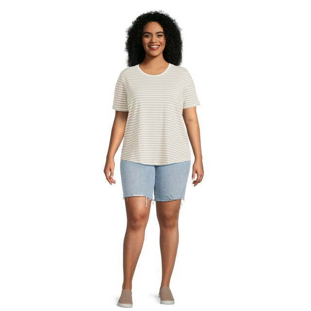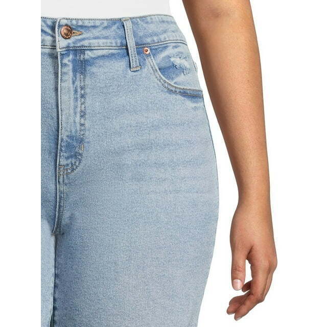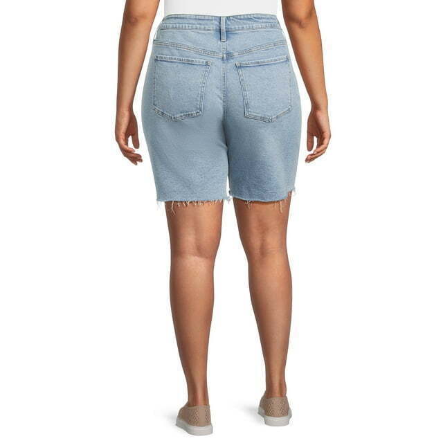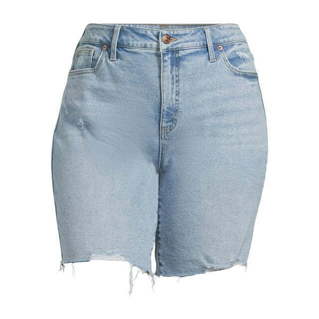 - Terra & Sky Women's Plus Size Destructed Bermuda Short, Size 24W Light Wash