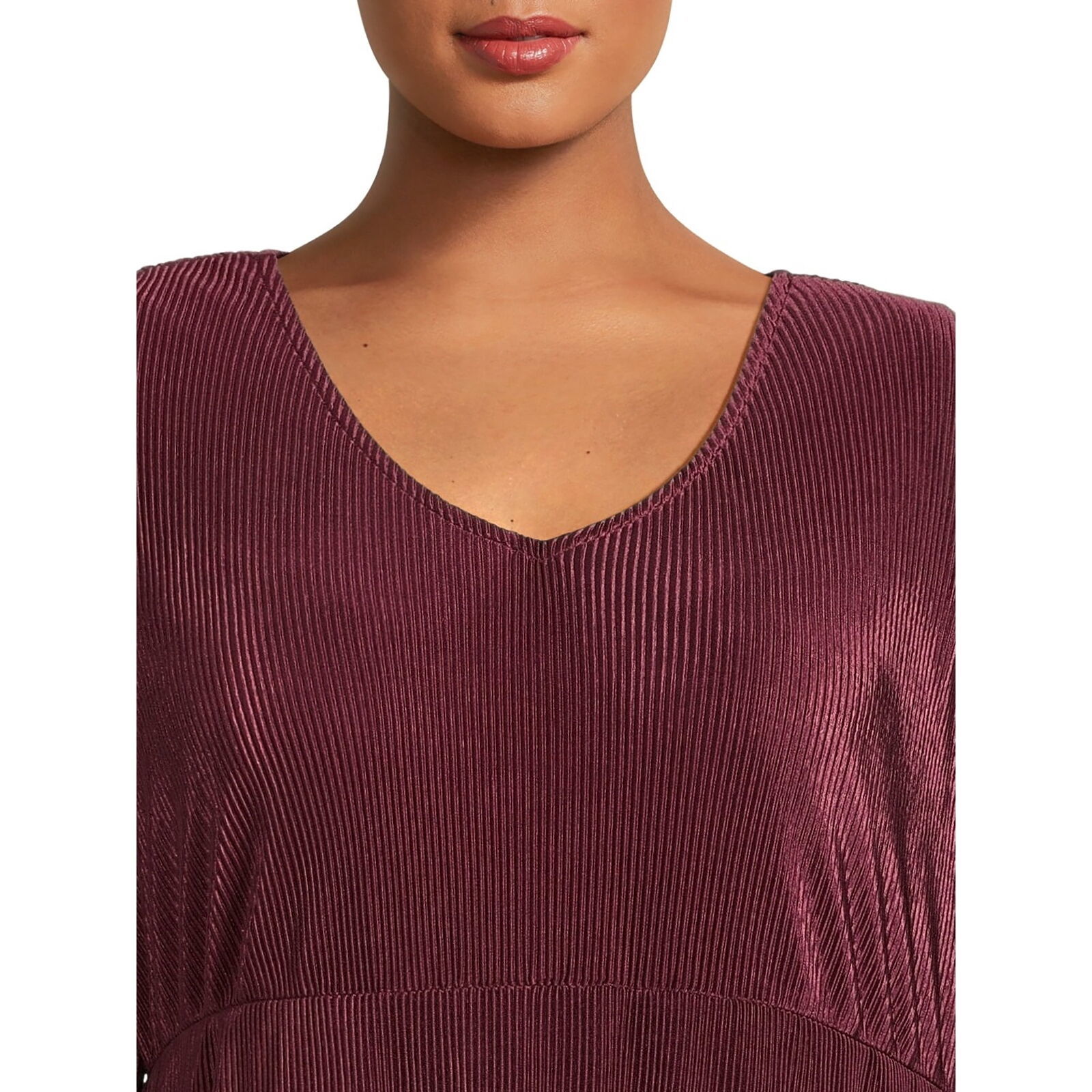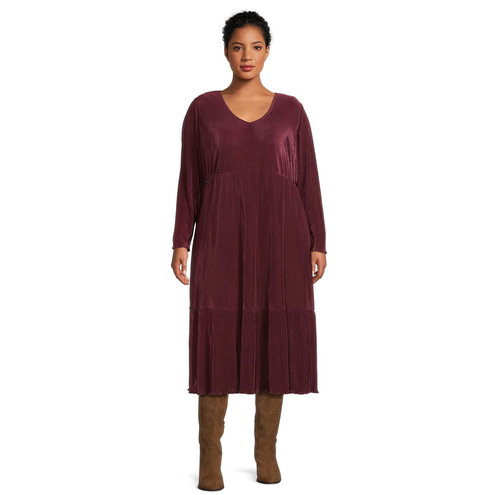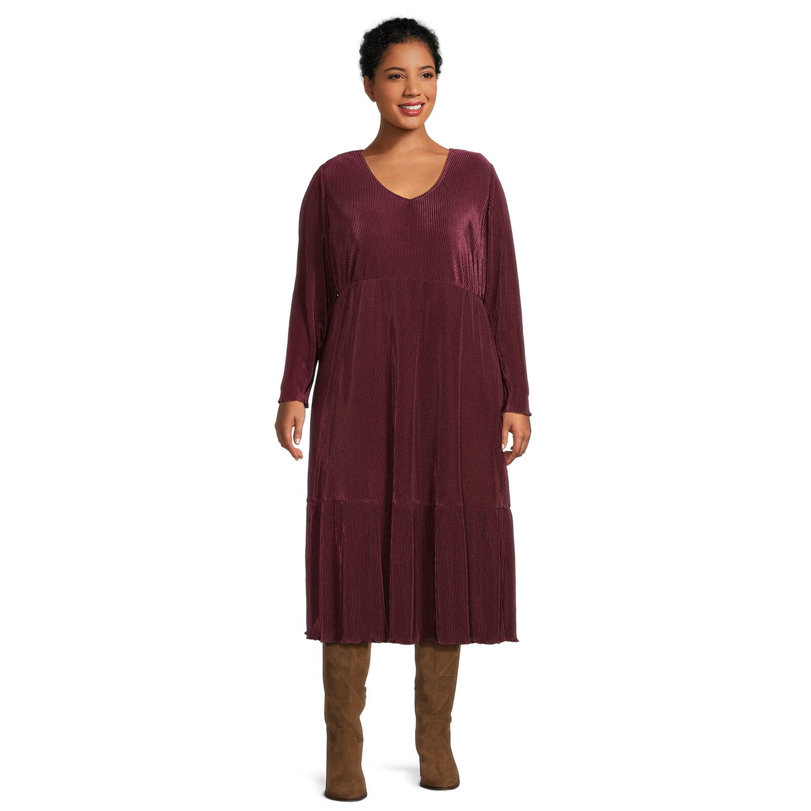 - Terra & Sky Women's Plus Size Long Sleeve Plisse Midi Dress Size 4x Rustic Plum