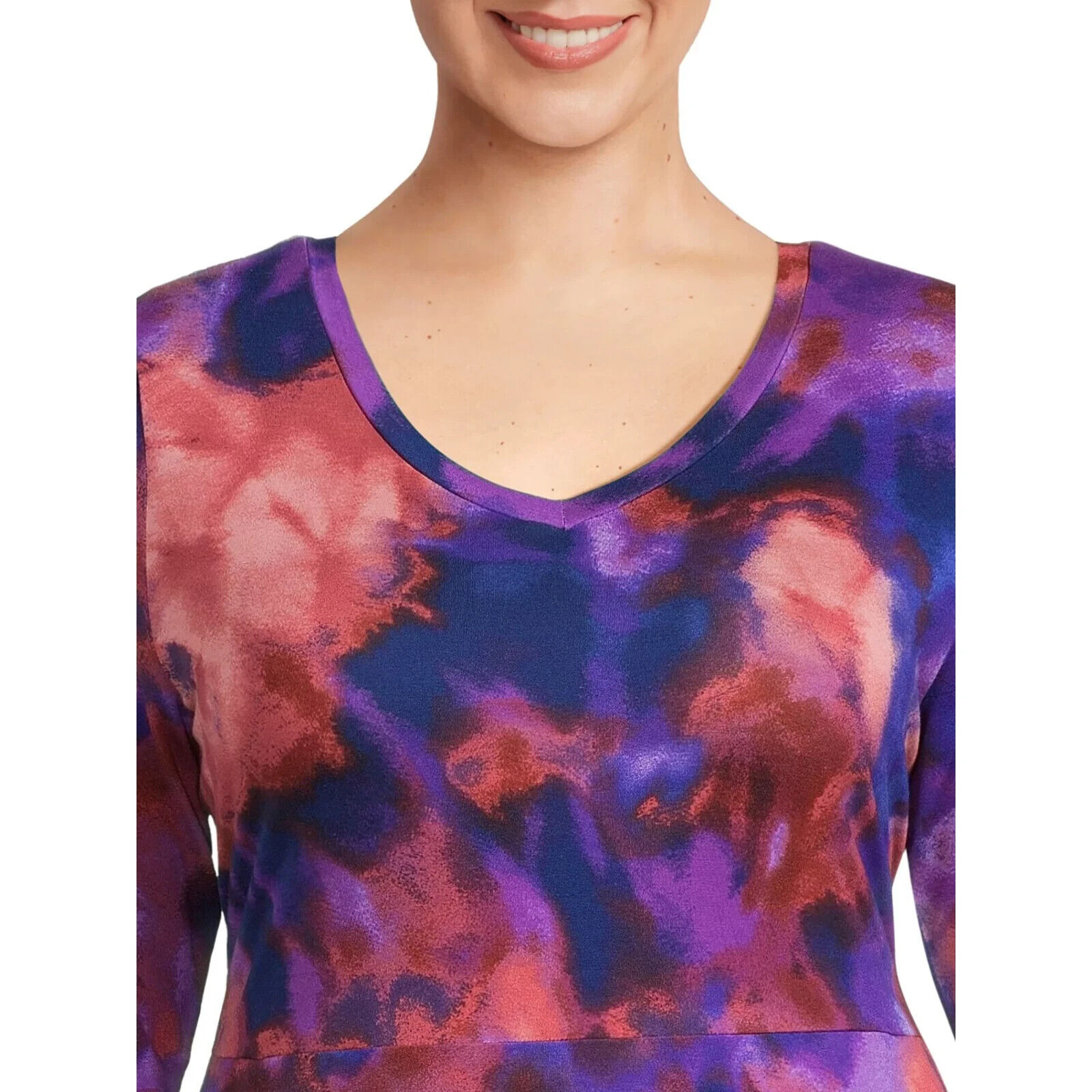 Terra Sky Women's Plus Size Long Sleeve Swing Dress Sunset Dye Pink Plume Size 4X(28W-30W)