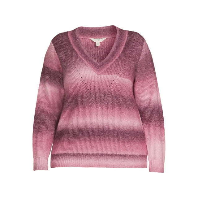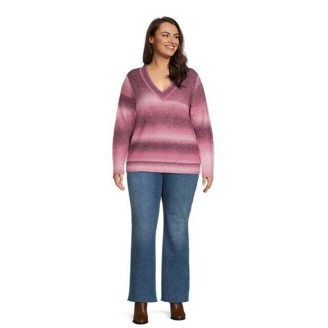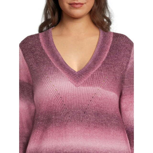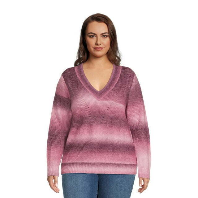 Terra and Sky Plus Size Pullover V-Neck Sweater for Women