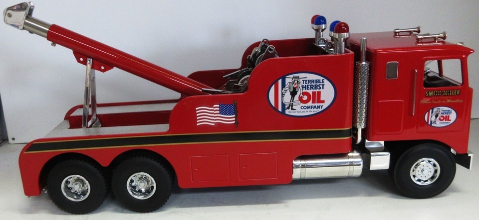 Special Limited Edition Terrible Herbst Oil Co. heavy duty wrecker depicts the late 1950's. The truck is made of aluminum and steel parts with real rubber tires. Measures 21" long by 8.5" tall by 6" wide weighs twenty pounds. Special Production of only 2.