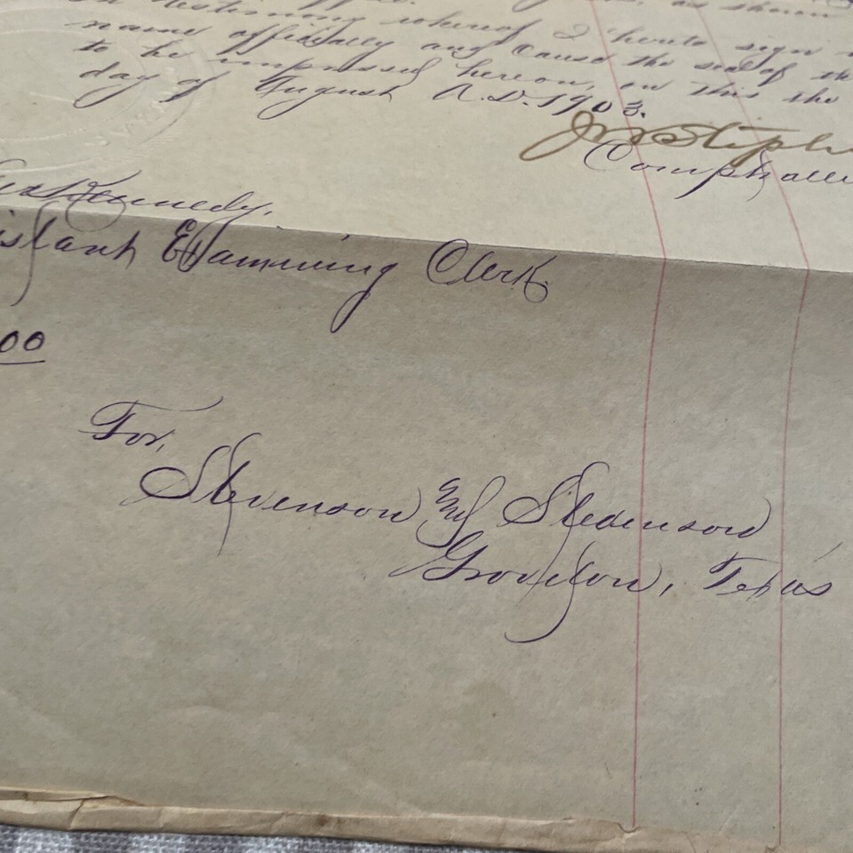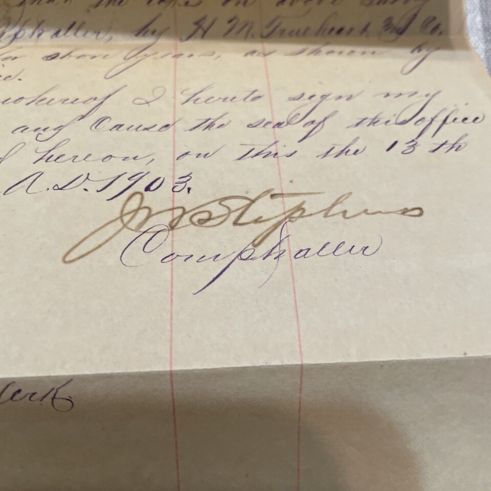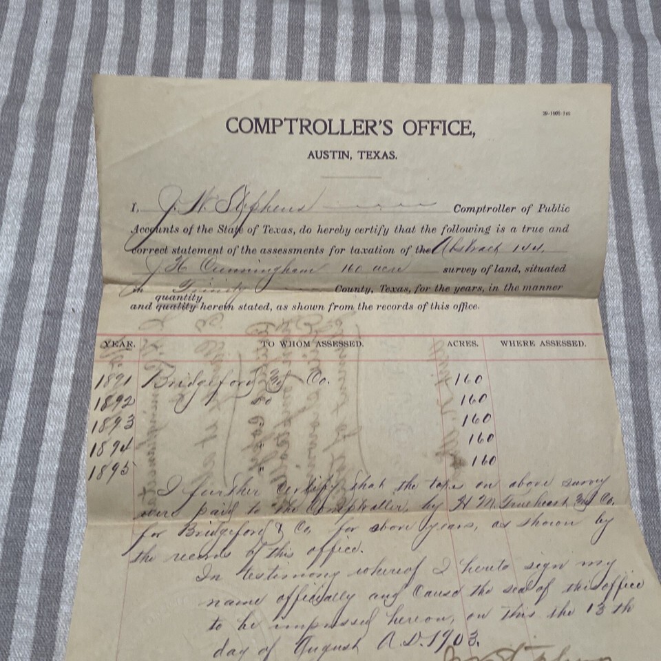 Texas Comptrollers Office 1903 Signed J. W. Stephens