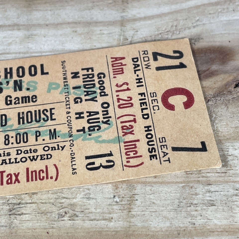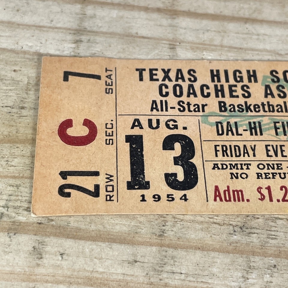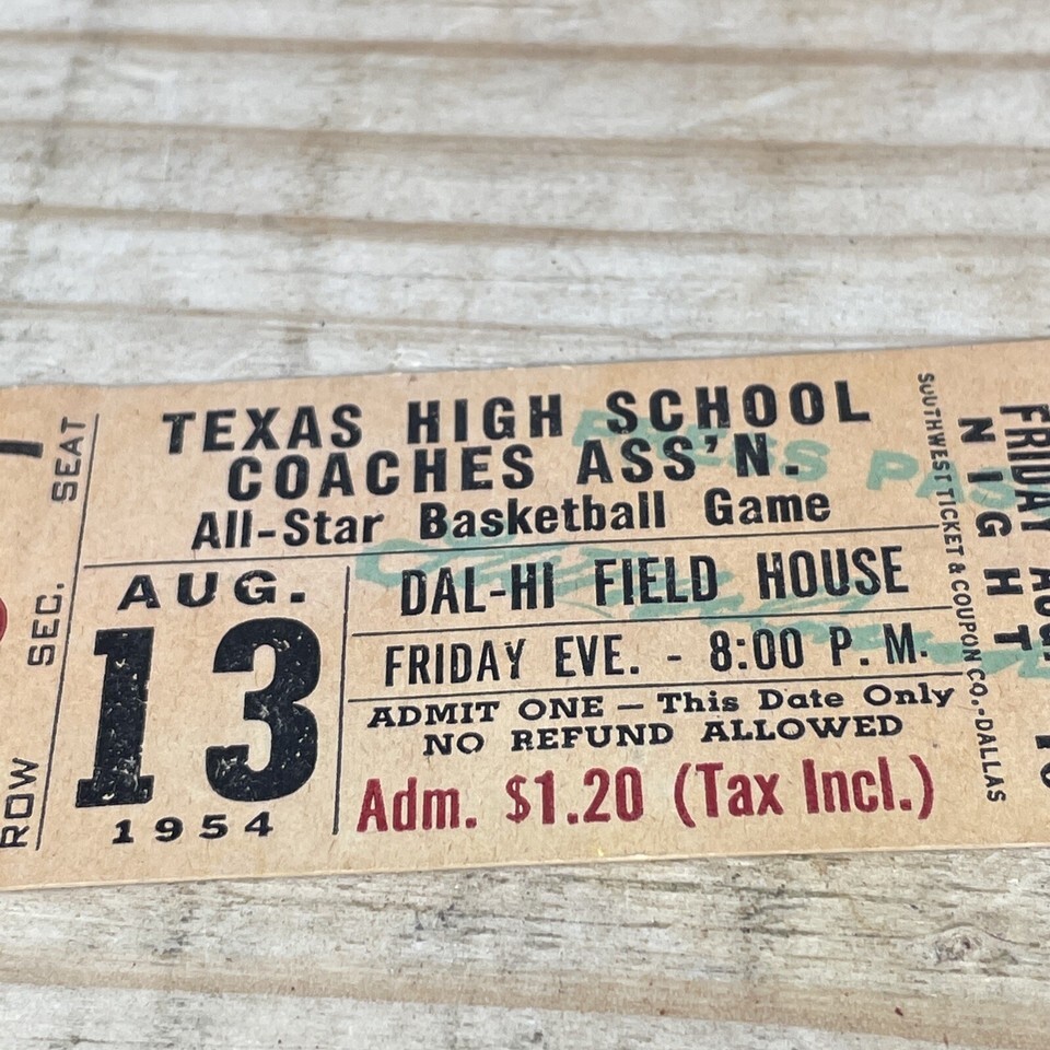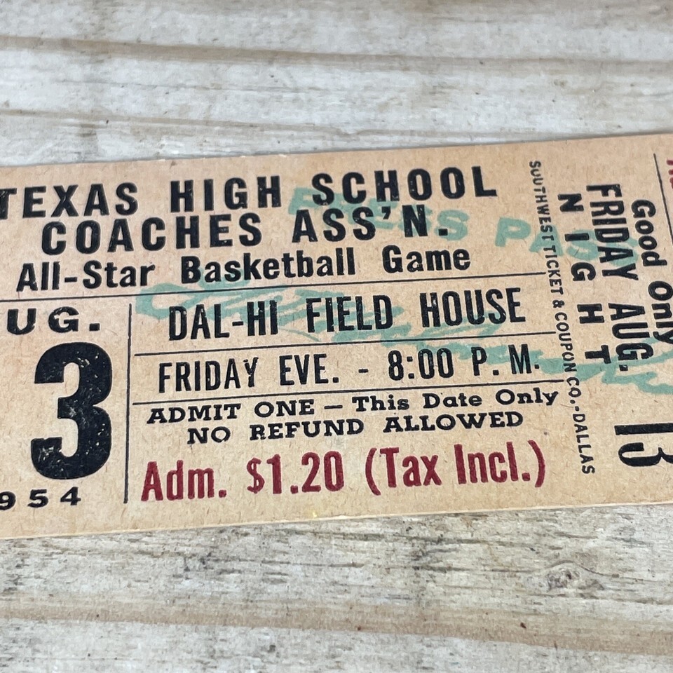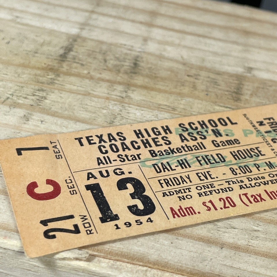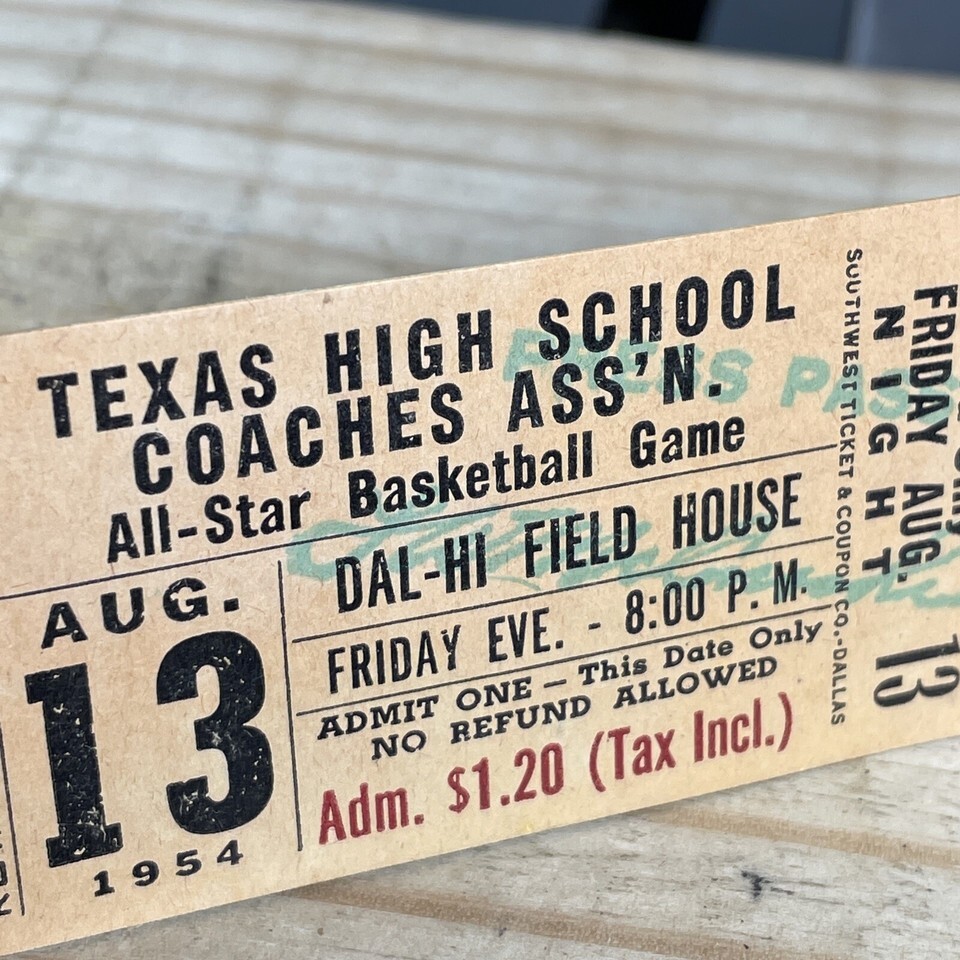 - Texas High School Coaches AssociationAll star basketball game ticket 1954 Dal-hi