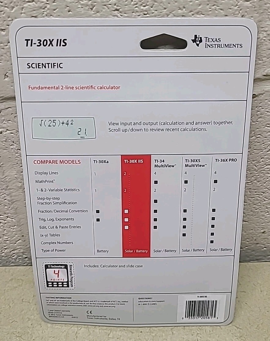 - Texas Instruments 30XIIS/TBL/1L1/AX Scientific Calculator New Sealed
