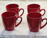 Enjoy your morning coffee in style with this festive set of 4 oversized coffee cups. The cups feature a red textured design, with an embossed sweater pattern, perfect for adding some holiday cheer to your kitchen. Each cup has a capacity of 14 ounces, making them perfect for your daily coffee fix or for serving hot cocoa during the winter months.