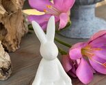 An adorable white yoga bunny ornament finished with a grey heart. A simple yet sweet decorative accessory and gift item.