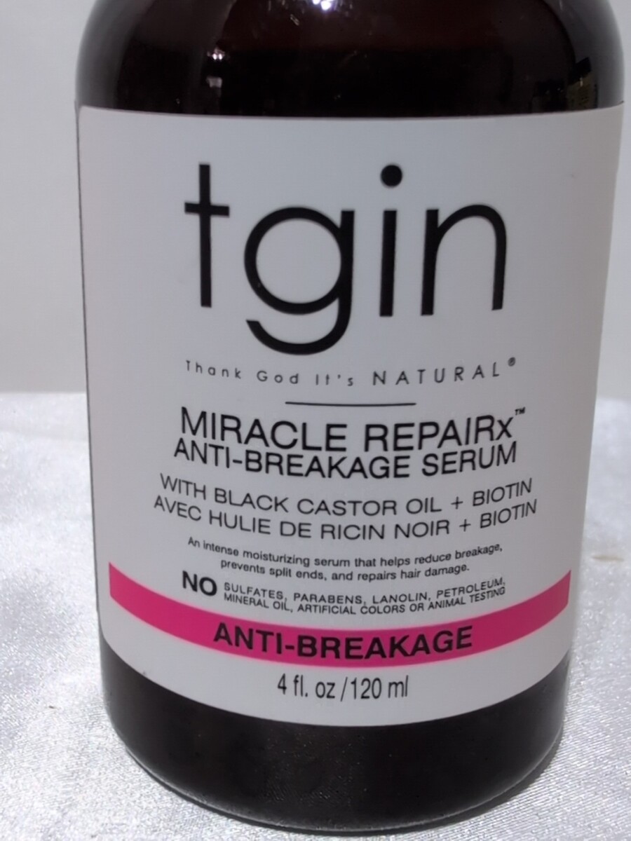 Strengthen and revive your hair with TGIN Miracle RepairX Anti-Breakage Serum. This lightweight, nutrient-rich formula helps reduce breakage, add shine, and protect strands from daily damage. Perfect for natural, curly, coily, or relaxed hair in need of moisture and repair.