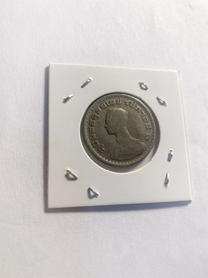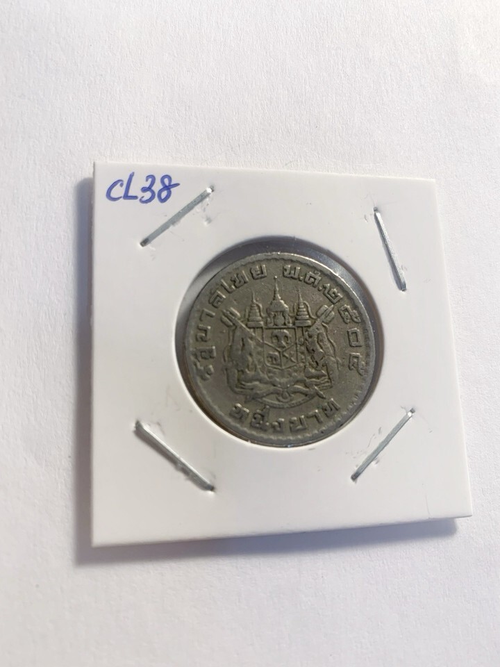 - Thailand 1 Baht Coin - Temple and Royal Arms Design - Asian Collectible Rare