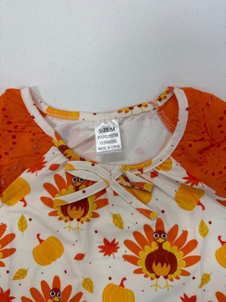 - Thanksgiving Girls Nightgown Orange Turkey Print Sleepwear Size 7-8