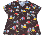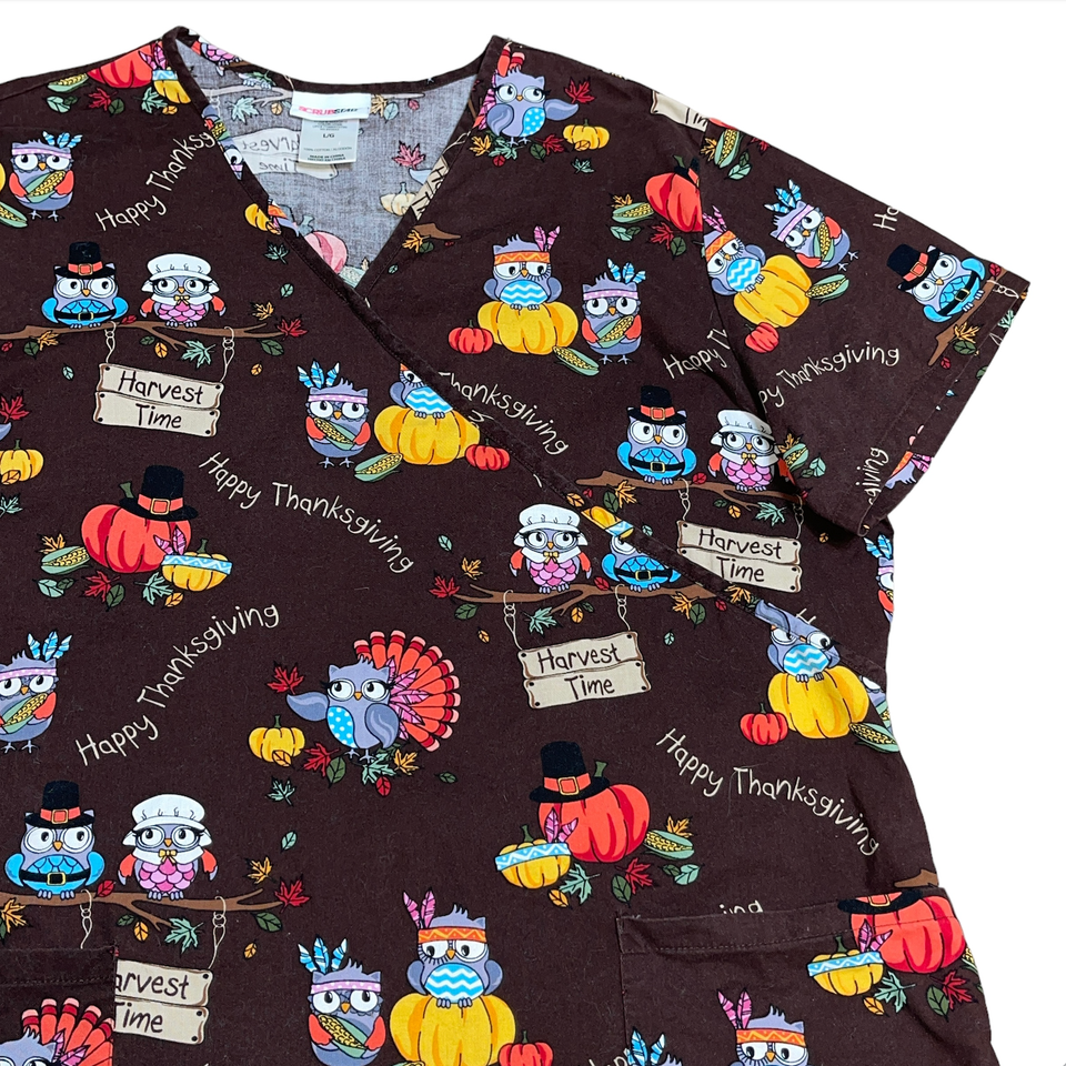 Thanksgiving Scrub Top Shirt Large Turkey Owl Gobble Pilgrim Pumpkin Nurse Vet