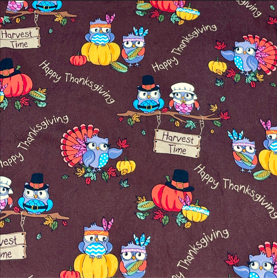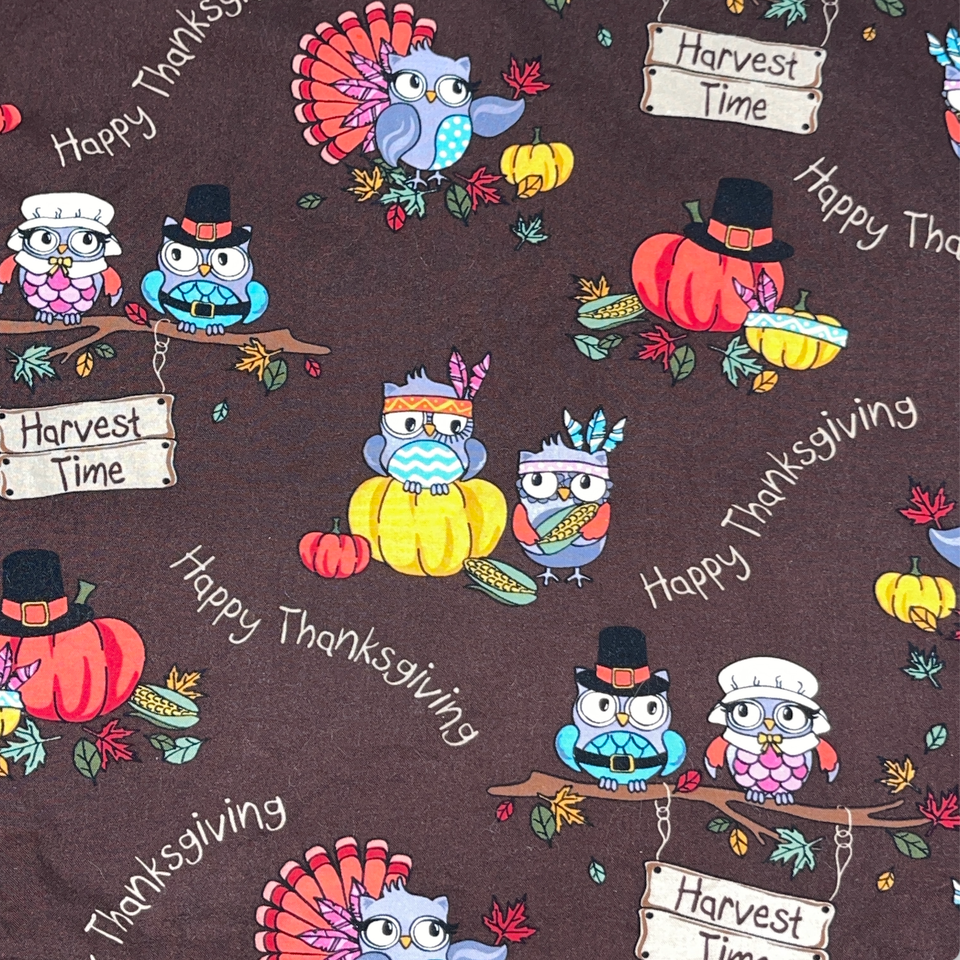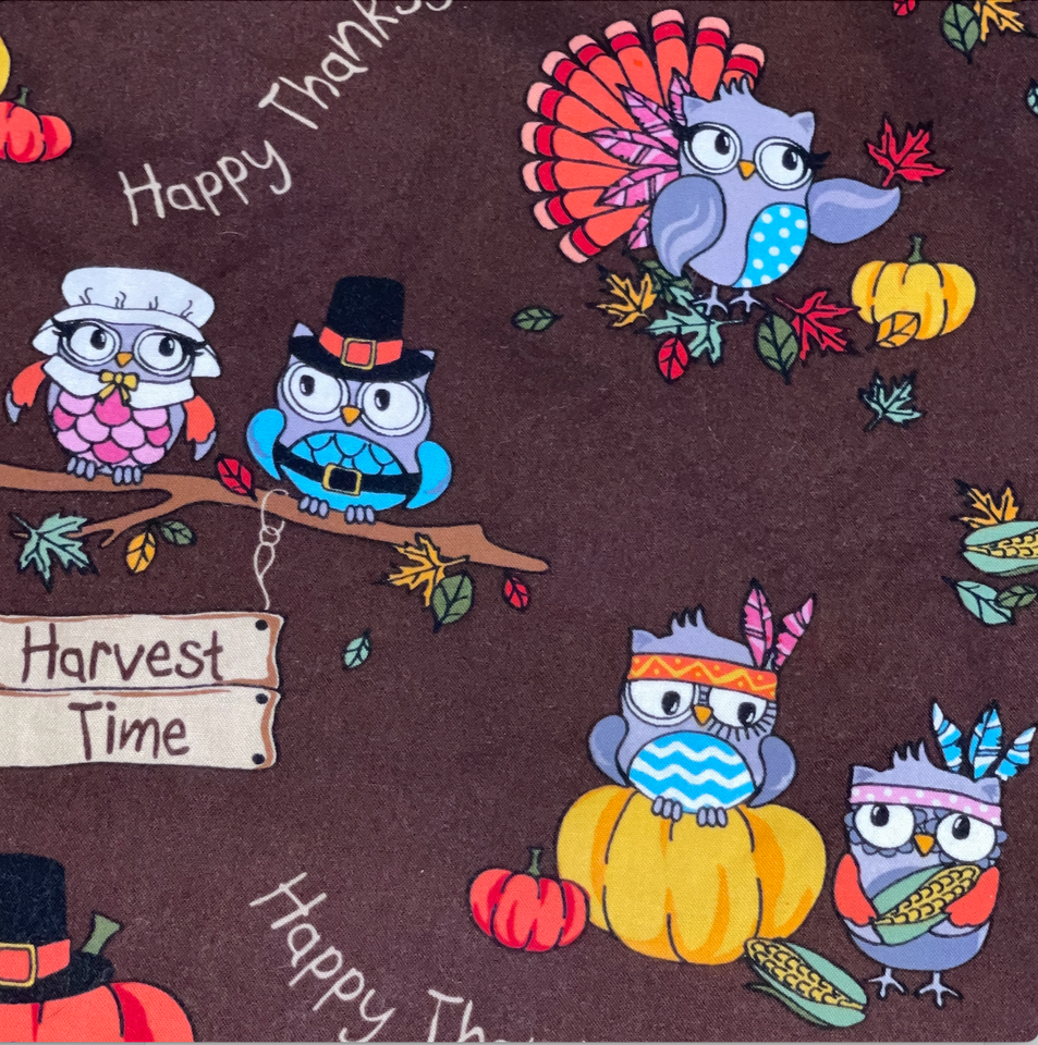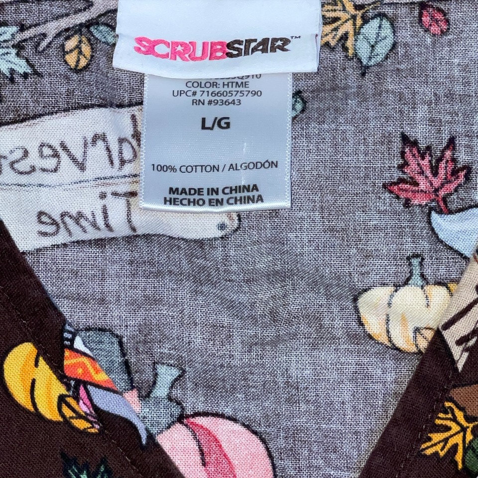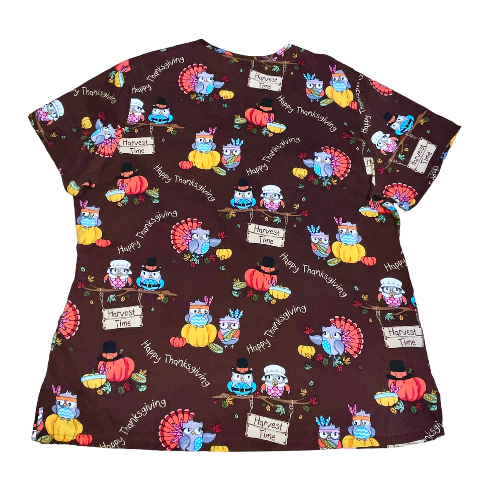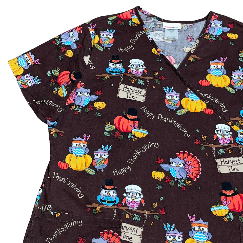 - Thanksgiving Scrub Top Shirt Large Turkey Owl Gobble Pilgrim Pumpkin Nurse Vet