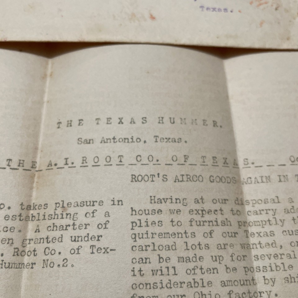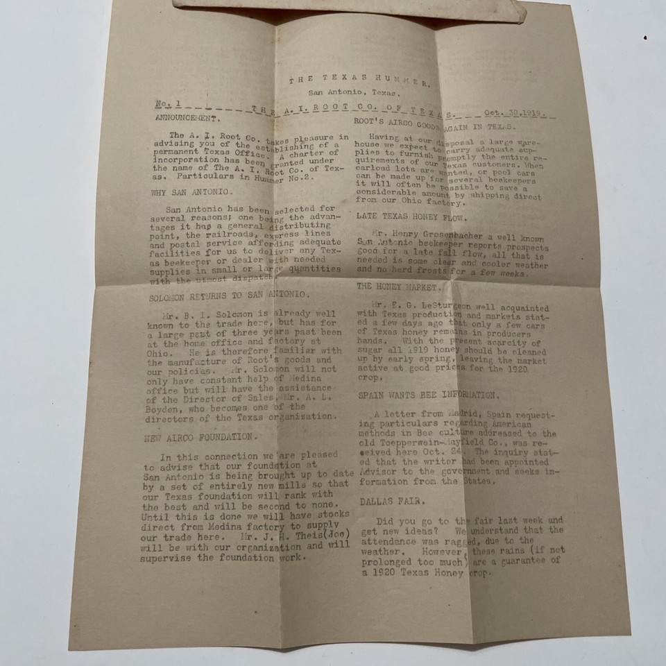 The A. I. Root Company The Texas Hummer Bee Keeping Newsletter 1919.
