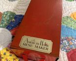 The American Home Menu Maker Red File Metal Recipe Box is an antique piece made of metal in the United States.