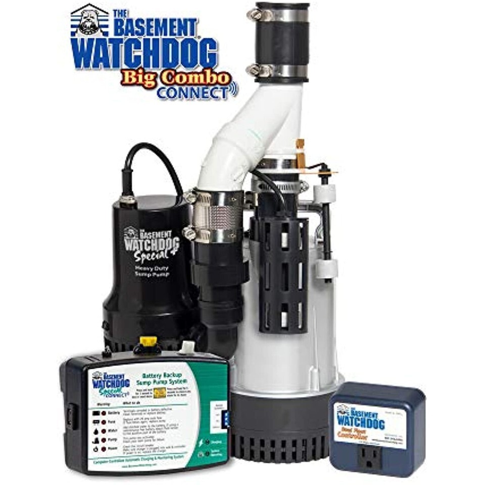 The Basement Watchdog Big Combo is a pre-assembled energy efficient oe HP Cast Iron / Cast Aluminum primary pump combined with the Basement Watchdog Special CONNECT Battery Backup Sump Pump System. With two pumps in your sump pit, you will know your basement is protected. Easy to install with little or no plumbing knowledge required, you can feel safe that The Basement Watchdog is WATCHING OUT FOR YOU!
