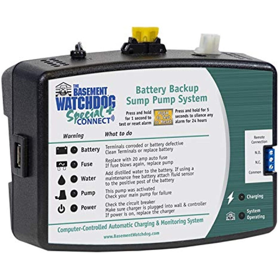 The Basement Watchdog Special CONNECT battery backup sump pump system is an intermediate level backup sump pump with a built-in monitoring system, patented dual float switch, high capacity and energy efficient pump which automatically protects your basement when needed.