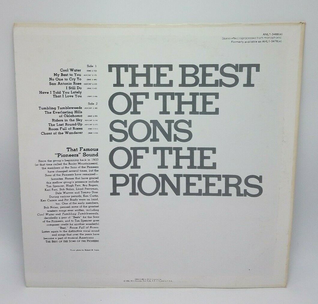 - The Best Of The Sons Of The Pioneers LP, 1966, Cowboy Country VG+/NM RCA 1966