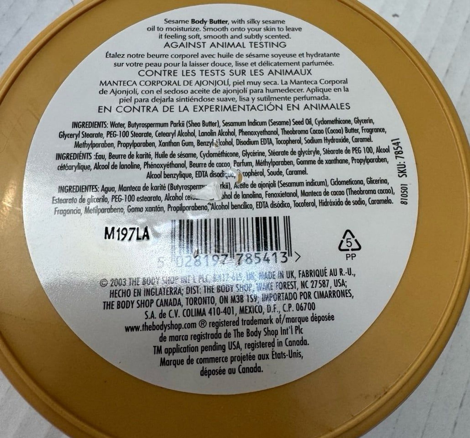 - The Body Shop Sesame Body Butter 6.9 Oz Very Dry Skin ~ Sealed ~ New Old Stock