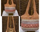 The Cappelli tote bag showcases a handcrafted, artisanal design with a woven or crocheted exterior, featuring a multi-colored, horizontal stripe pattern in various shades of brown, blue, and pink, paired with a canvas or similar fabric lining, woven/braided handles, and a button closure, making it an ideal choice for casual, everyday use or as a stylish beach bag