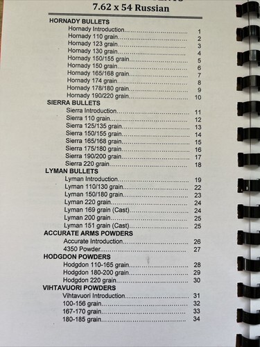 7.62 x54 Russian, Load books USA 37 pages, new latest edition, This manual features 1167 loads, 83 Bullet designs, 39 powders.