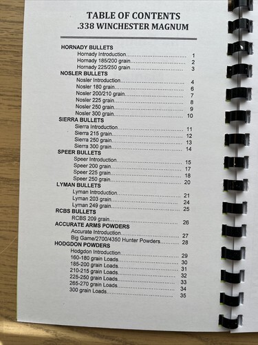 LoadBooks USA the complete reloading manual for the .338 Winchester, 338 WIN, new latest edition, this manual contains 1046 Loads, 53 Bullet designs, 52 Powders.