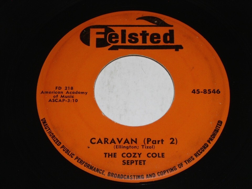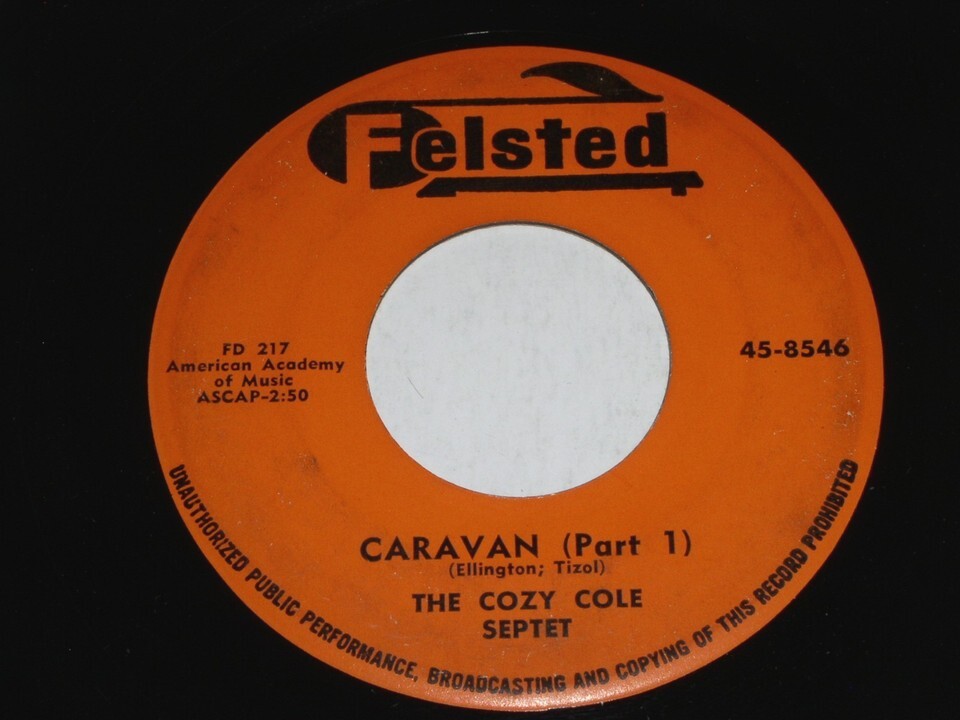 This is a vintage 45 rpm phonograph record by The Cozy Cole Septet entitled, "Caravan". Flipside: "Part 2". Record Label: Felsted 45-8546.
