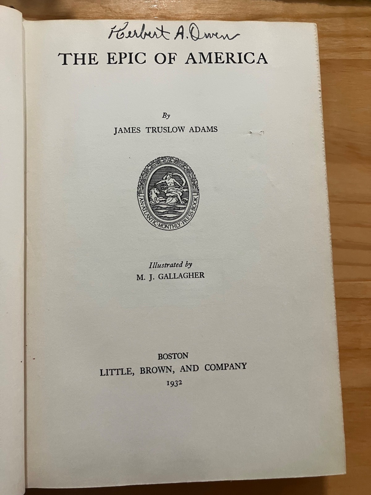 - The Epic of America James Truslow Adams Hardcover 1932 Little Brown and Co