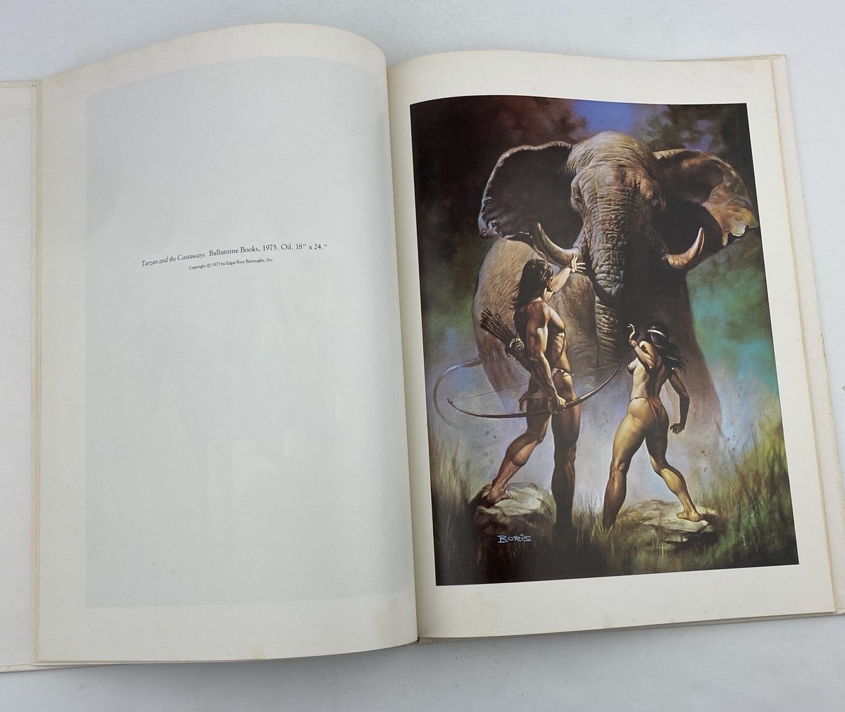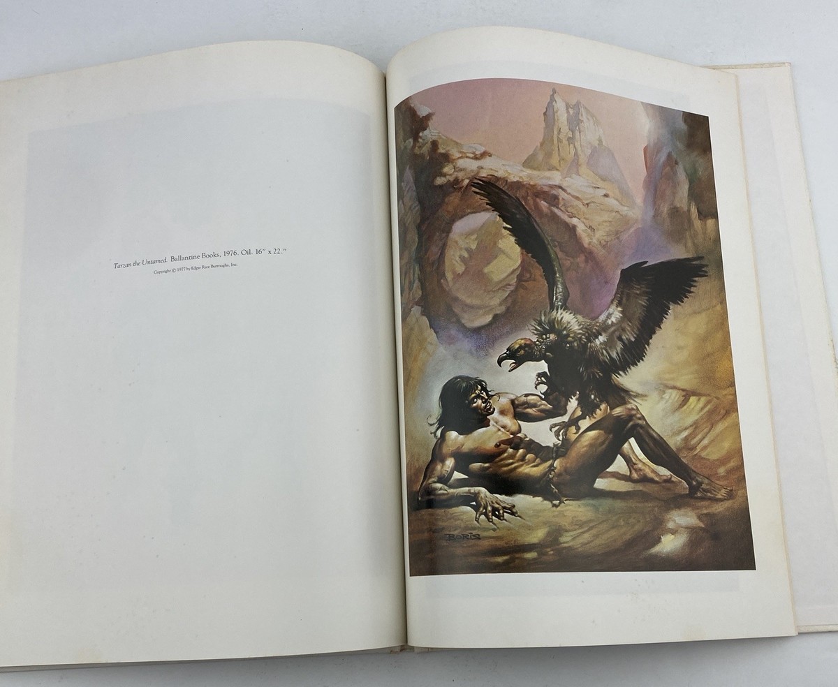 1978 first edition hardcover of The Fantastic Art of Boris by Boris Vallejo. Please note: the book is missing the dust jacket and has staining on the white parts of the front, back, spine and interior pages. The color illustrations appear unsustained. No warping. Please see pictures for exact condition details. From a smoke-free home. Ships next day!