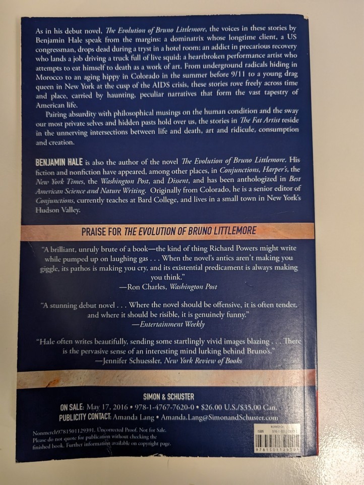 - The Fat Artist and Other Stories Benjamin Hale Literary Fiction Short Stories