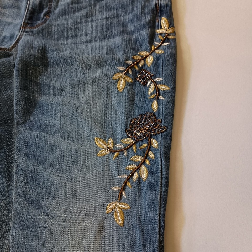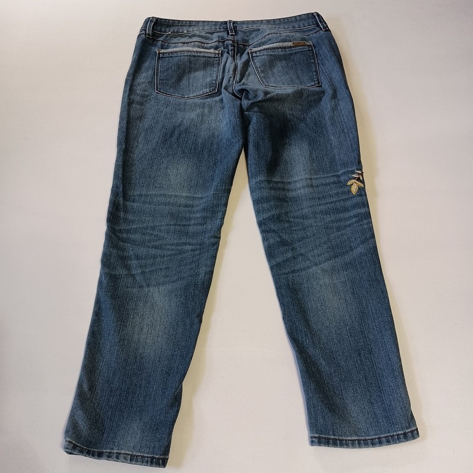 THE GIRLFRIEND Slim Leg Ankle Jeans Size 6P Medium Wash Floral Accents