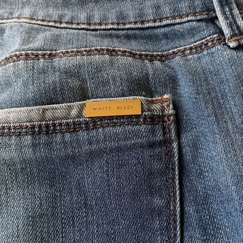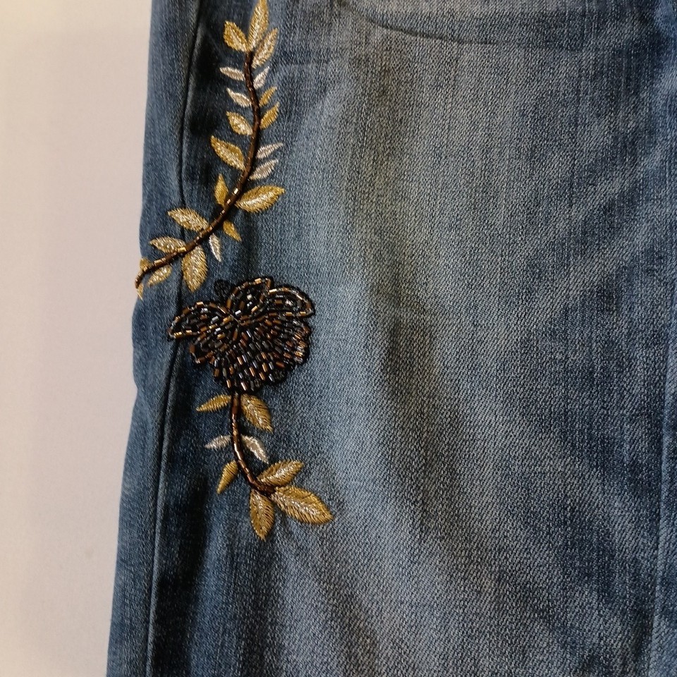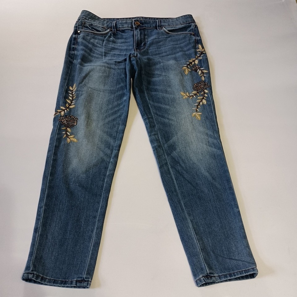 - THE GIRLFRIEND Slim Leg Ankle Jeans Size 6P Medium Wash Floral Accents