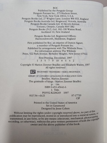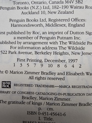 - The Gratitude of Kings by Marion Zimmer Bradley First Edition First Print 1997