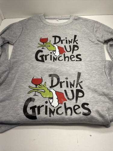 - The Grinch “Drink Up Grinches” Sweatshirt Med Gray Lot Of 2