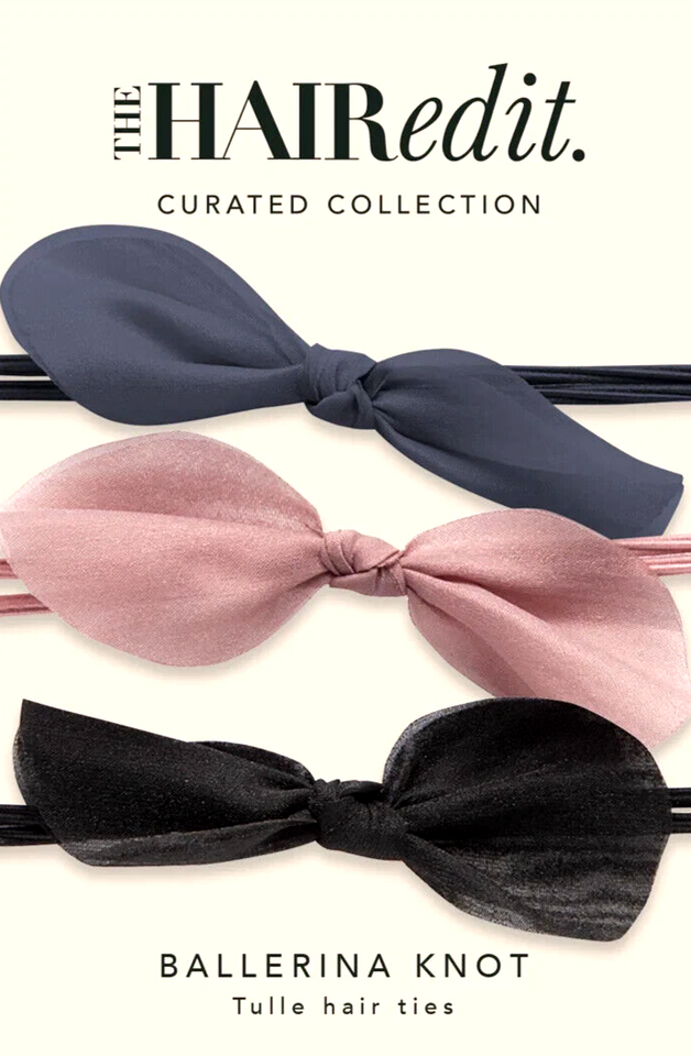 - The Hair Edit Ballerina Knots Tulle Hair Ties Set Of 3 Pink Blue & Black NEW