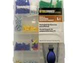 Hillman Wall Hanger Assortment Kit Large- Includes tapping screws, wood screws, and anchors, along with other fasteners, perfect for wall hanging. Contains: .75" blue conical, 1.25" blue ribbed, .88" yellow ribbed, and 1.5" green ribbed anchors; 1" pan head, .75" tapping, 1" slotted wood, 1" flat head Phillips tapping, and 1.25" flat head Phillips tapping screws; eye screw, push pins; and insert bit handle with 2" slotted and 2" Phillips inserts.