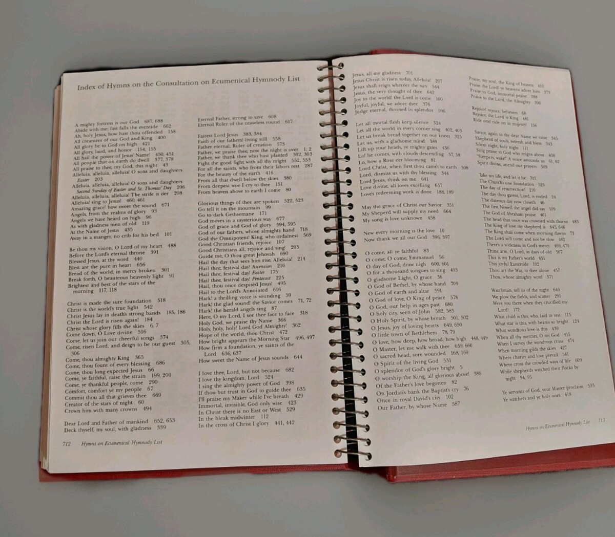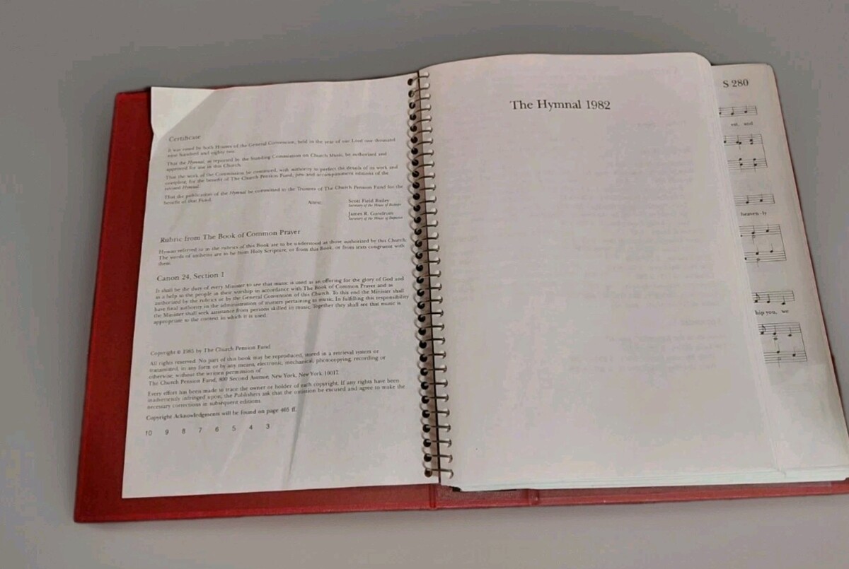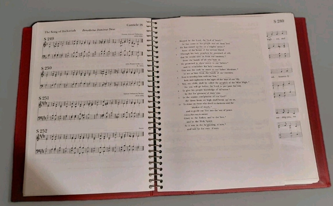 This loose-leaf, ring/wire-bound book, originally published by Church Hymnal Corporation in 1982, features 713 pages of English-language hymns and accompaniment music.