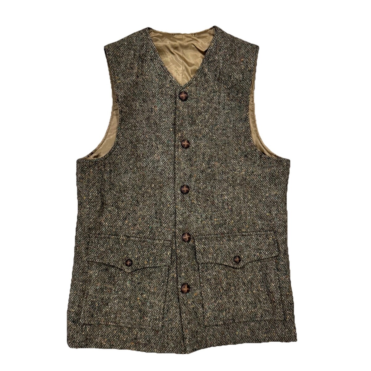 The J. Peterman Co Sz 38 Wool Vest Cargo Pockets Heritage Tweed