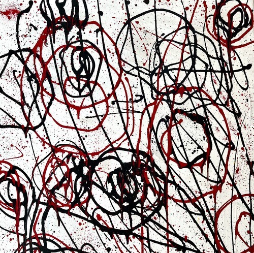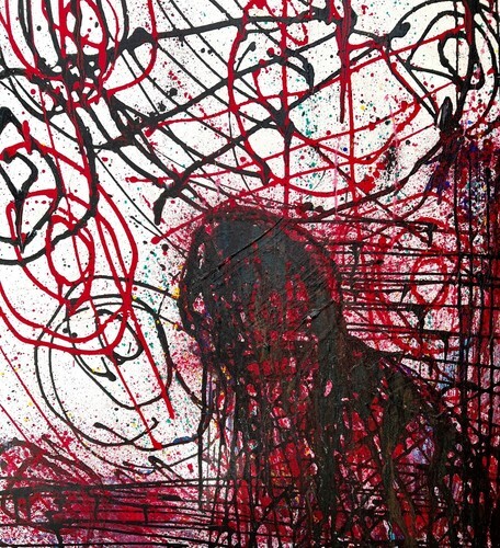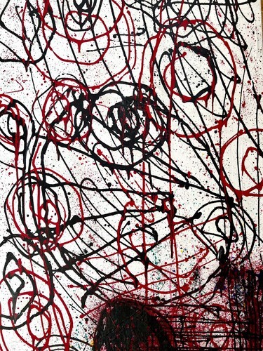 Really vibrant and spooky piece. Some light wear from storage. Red and Black contrast is spectacular