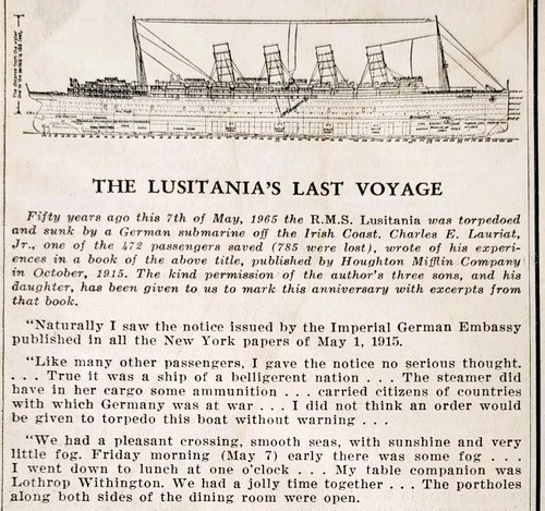 - The Lusitania's Last Voyage 1965 Almanac Military Nautical Ephemera DWNN4